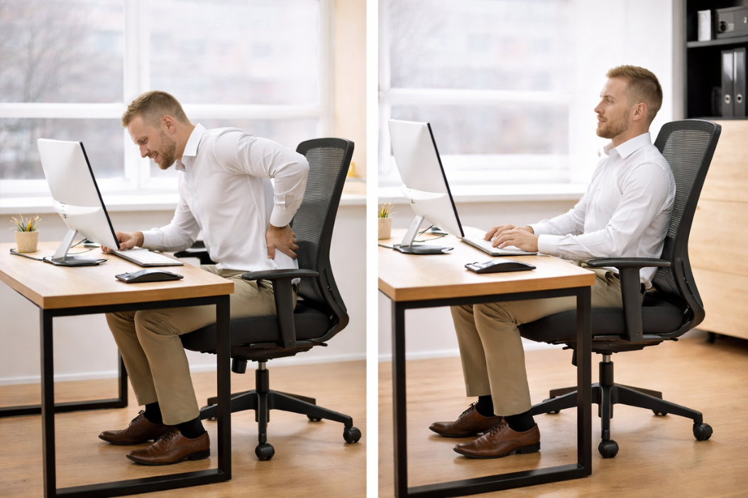 For millions of office workers, a typical workday looks something like this: sit down, open the laptop, answer emails, attend meetings, finish reports, and repeat the process for eight or more hours. It feels normal because it has become the standard routine in modern workplaces. What many people donβt realize, however, is that long hours of sitting can slowly create health problems that develop so gradually they often go unnoticed until discomfort becomes persistent. The human body simply wasnβt designed to remain in one seated position for most of the day. When employees sit for extended periods, especially in poorly designed office setups, muscles, joints, and circulation are affected in ways that can eventually lead to long-term physical strain. Understanding these hidden issues is the first step toward preventing them. Why Prolonged Sitting Is a Problem When the body stays seated for long periods, several systems begin to slow down. Muscle activity decreases, blood circulation becomes less efficient, and posture often starts to deteriorate. Over time, this combination creates stress on the spine, joints, and muscles. Office environments also encourage static posture. Many employees remain focused on their screens for hours without realizing how long they have stayed in the same position. Even small posture mistakes repeated every day can compound into larger physical problems. become the standard routine in modern workplaces. What many people donβt realize, however, is that long hours of sitting can slowly create health problems that develop so gradually they often go unnoticed until discomfort becomes persistent. The human body simply wasnβt designed to remain in one seated position for most of the day. When employees sit for extended periods, especially in poorly designed office setups, muscles, joints, and circulation are affected in ways that can eventually lead to long-term physical strain. Understanding these hidden issues is the first step toward preventing them. Hidden Problems Caused by Long Hours of Sitting Many workplace-related health issues develop gradually. Because they build up slowly, people often assume the discomfort is temporary or unrelated to their work habits. Lower Back Strain Lower back pain is one of the most common issues experienced by office workers. When sitting without proper lumbar support, the natural curve of the spine begins to collapse. The pelvis tilts backward and pressure increases on the spinal discs. Over time this can lead to chronic discomfort, muscle fatigue, and reduced mobility in the lower back. Neck and Shoulder Tension Poor monitor placement or leaning forward while working places additional strain on the neck and shoulders. When the head moves forward from its neutral position, the neck must support significantly more weight. This posture often causes stiffness, headaches, and upper back fatigue by the end of the workday. Reduced Circulation Lower back pain is one of the most common issues experienced by office workers. When sitting without proper lumbar support, the natural curve of the spine begins to collapse. The pelvis tilts backward and pressure increases on the spinal discs. Over time this can lead to chronic discomfort, muscle fatigue, and reduced mobility in the lower back. This can cause symptoms such as: Leg stiffness Swelling in the feet or ankles Fatigue during the day Movement helps maintain healthy circulation, which is why regular breaks are important during long work sessions. Poor Posture Habits Many workers unintentionally develop poor posture habits while focusing on their tasks. Slouching, leaning toward the screen, or sitting at the edge of a chair gradually trains the body into unhealthy positions. Once these habits become routine, they can affect spinal alignment and increase the risk of long-term musculoskeletal issues. Why Most People Donβt Notice the Problem One reason these issues are common is that the discomfort develops gradually. At first, symptoms may only appear occasionally, such as mild stiffness or fatigue late in the day. Because the discomfort fades after resting or sleeping, people often overlook the connection between their workspace setup and their physical health. By the time pain becomes frequent, the body has already adapted to unhealthy movement patterns. Preventing Office-Related Physical Problems Fortunately, many of these issues can be prevented with a few simple changes to workstation setup and daily habits. Maintain Proper Sitting Posture Good sitting posture keeps the spine in a neutral alignment. Key elements include: Feet flat on the floor Knees roughly level with the hips Back supported by the chair Shoulders relaxed Head aligned with the spine This posture reduces unnecessary strain on the back and neck. Preventing Office-Related Physical Problems Fortunately, many of these issues can be prevented with a few simple changes to workstation setup and daily habits. Maintain Proper Sitting Posture Good sitting posture keeps the spine in a neutral alignment. Key elements include: Feet flat on the floor Knees roughly level with the hips Back supported by the chair Shoulders relaxed Head aligned with the spine This posture reduces unnecessary strain on the back and neck. Preventing Office-Related Physical Problems Fortunately, many of these issues can be prevented with a few simple changes to workstation setup and daily habits. Maintain Proper Sitting Posture Good sitting posture keeps the spine in a neutral alignment. Key elements include: Feet flat on the floor Knees roughly level with the hips Back supported by the chair Shoulders relaxed Head aligned with the spine This posture reduces unnecessary strain on the back and neck. Adjust Monitor and Desk Height A well-designed ergonomic chair supports the natural curve of the spine and distributes body weight evenly. Features such as lumbar support, adjustable armrests, and seat height adjustment allow users to tailor the chair to t